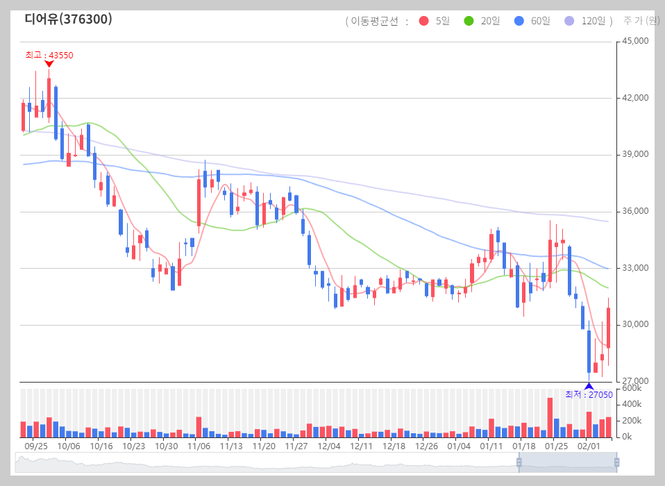 삼성증권에서 6일 디어유(376300)에 대해 "연이은 호실적"라며 투자의견을 'BUY'로 제시하였고, 아울러 목표주가로는 41,000원을 내놓았다.