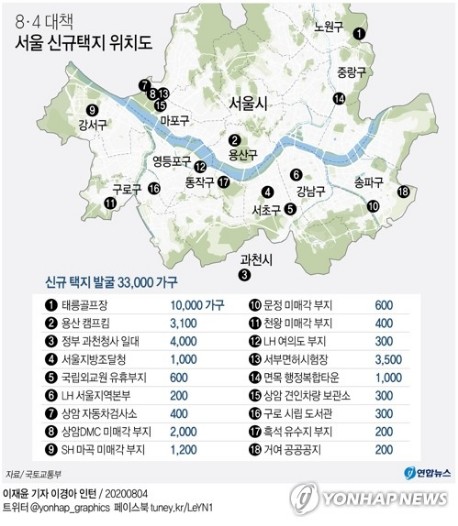 ① 정부 소유 유휴부지의 신규택지화(3.3만 세대, 태릉골프장 부지 등),