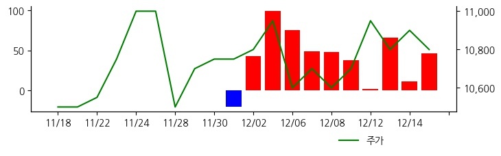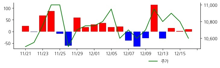 기관이 지속적으로 순매수 한 종목입니다. 주가의 위치나 산업의 변화를 확인하면서 대응할 필요가 있습니다. 12/15 16:35 기준
