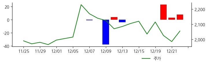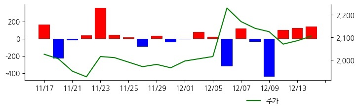 외국인이 지속적으로 순매수 한 종목입니다. 주가의 위치나 산업의 변화를 확인하면서 대응할 필요가 있습니다. 12/14 16:45 기준