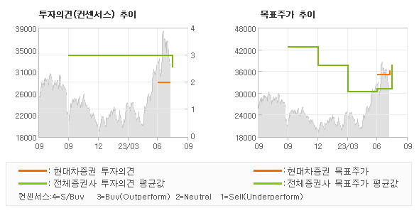 오늘 이베스트투자증권에서 발표된 'HOLD'의견 및 목표주가 32,000원은 전체의견을 소폭 하회하는 수준으로 동종목에 대한 기대감을 다소 약하게 표현한 것으로 풀이되며 목표가평균 대비 11.9%정도 미달하고 있는 것으로 집계되었다.