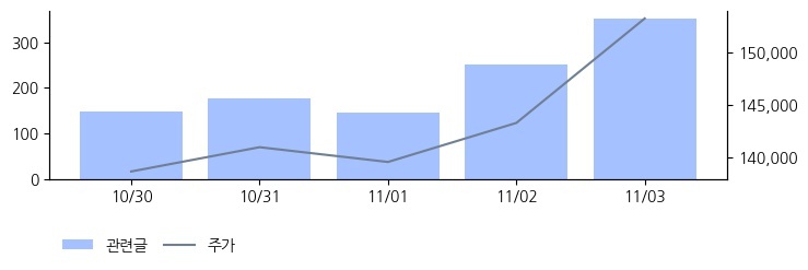 최근 5일 평균 대비 커뮤니티 및 SNS에 관련글이 급증한 종목입니다. 11/06 08:01 기준