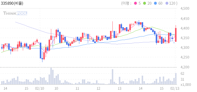 오늘 주식 종목 추천 [ 비올 ]주가 2/16 목요일 추천 종목 입니다.