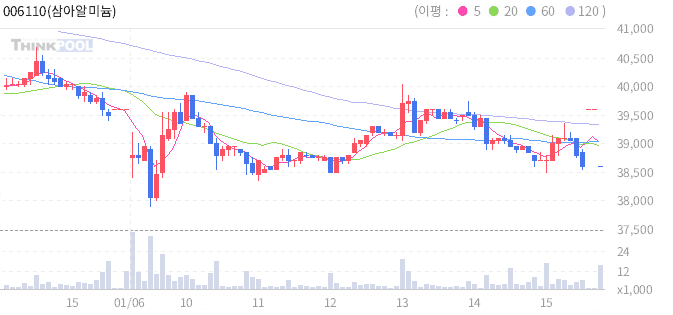 09일 삼아알미늄,급등후 단기 조정중, 눌림목 발생