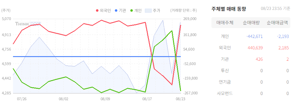 - [장중수급포착] 상신전자, 외국인 23.12만 주 대량 순매수... 주가 +16.93%08/23