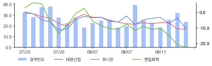 한일화학 주가 다시 뜀박질 준비?...페라이트 관련주 모습은?2023/08/21한편 페라이트 관련주는 EG 유니온머티리얼 삼화전자 태경산업 씨큐브 아모그린텍 미래나노텍 삼화전기 상신전자 한솔테크닉스 아모센스 케스피온 알엔투테크놀로지 등이 있다.