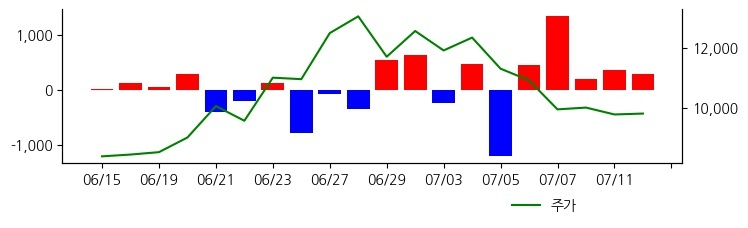 외국인이 지속적으로 순매수 한 종목입니다. 주가의 위치나 산업의 변화를 확인하면서 대응할 필요가 있습니다. 07/10 16:37 기준