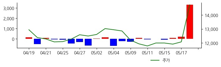 기관이 지속적으로 순매수 한 종목입니다. 주가의 위치나 산업의 변화를 확인하면서 대응할 필요가 있습니다. 05/18 16:39 기준