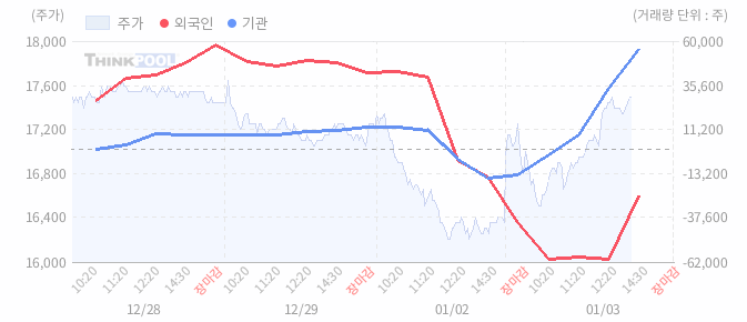 03일 14:40 매매 동향 : 외국인 15,000주 순매수, 기관 70,000주 순매수