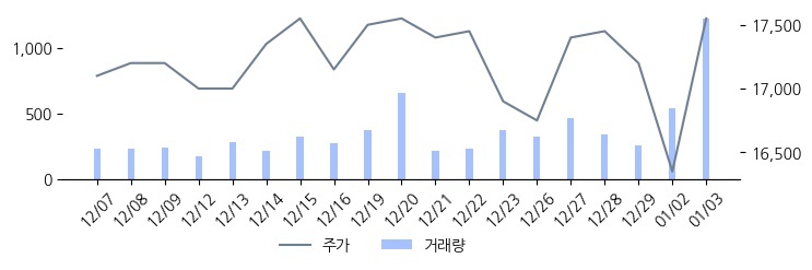 투신의 순매수량이 지난 1개월 대비 큰 종목입니다. 당분간 증권사 리포트에 관심을 둘 필요가 있습니다. 01/03 14:46 기준