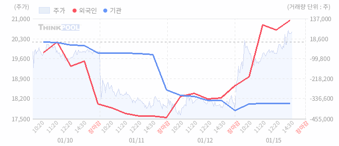 15일 순매매 동향 : 기관 1,715백만원 순매수, 외국인 26,224백만원 순매수, 개인 27,645백만원 순매도