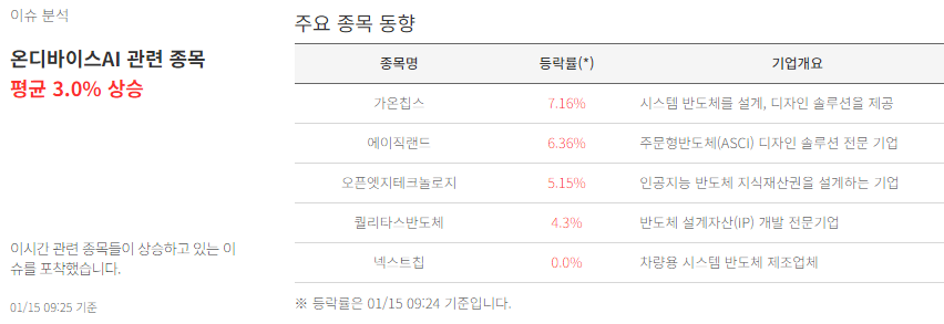 제주반도체 (17.17%) : 휴대폰부품관련주, 시총7200억대, 메모리반도체사업, 삼성전자의 온디바이스AI 관련 LPDDR5XPIM 제품을 출시 소식 ? LPDDR(전력 소모량 극소화, 처리 속도 극대화) 기술력 보유 등...