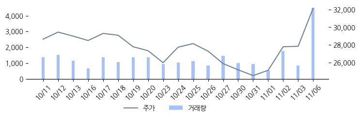 참고로 최근에 목표주가를 가장 공격적으로 제시한 다올투자증권은 투자의견 'BUY'에 목표주가 43,000원을 제시한 바 있다.