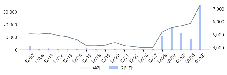 최근 20일 평균 대비 커뮤니티 및 SNS에 관련글이 급증한 종목입니다. 01/08 08:02 기준