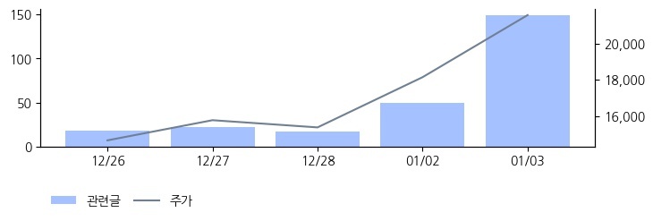 최근 5일 평균 대비 커뮤니티 및 SNS에 관련글이 급증한 종목입니다. 01/04 08:01 기준