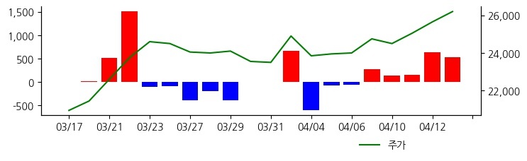14일 순매매 동향 : 기관 2,329백만원 순매수, 외국인 524백만원 순매도, 개인 2,124백만원 순매도
