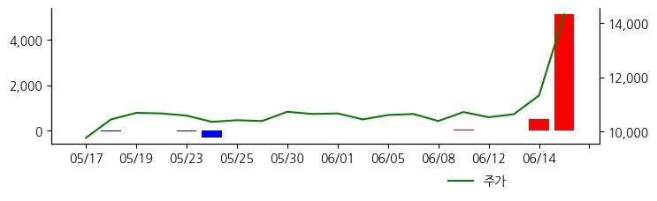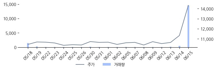 20일 평균 거래량 대비 거래량이 급증한 종목입니다. 최근 주가의 움직임과 주요 매매주체의 변동을 함께 확인해야 합니다. 06/15 15:36 기준