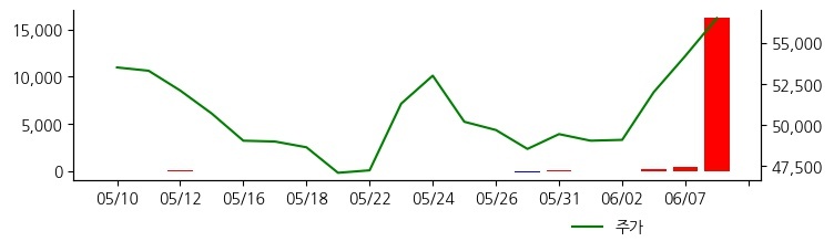 기관이 지속적으로 순매수 한 종목입니다. 주가의 위치나 산업의 변화를 확인하면서 대응할 필요가 있습니다. 06/08 16:33 기준