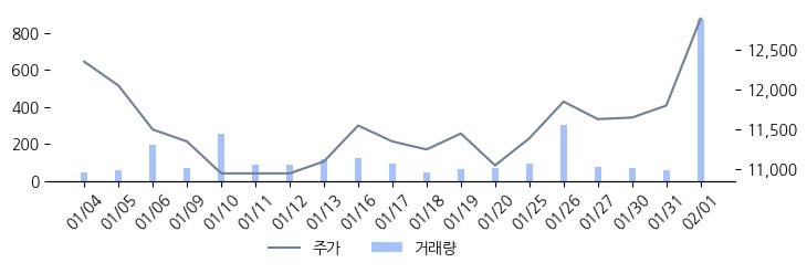 투신의 순매수량이 지난 1개월 대비 큰 종목입니다. 당분간 증권사 리포트에 관심을 둘 필요가 있습니다. 02/01 11:30 기준