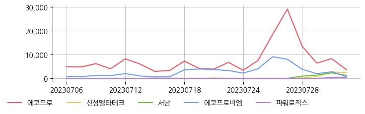 이차전지(2차전지) 종목 주가가 전반적으로 약세를 나타냈다. 상온 초전도체 종목으로 수급이 대거... 코스닥에서는 서남(294630)(30.00%), 모비스(250060)(29.98%), 파워로직스(047310)(29.97%), 신성델타테크(065350)(29.75%) 등...