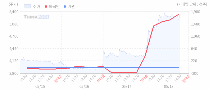 상장주식수 대비 외국인 순매수 비중이 높은 종목입니다. 종목에 새로운 이슈가 있는지 살펴볼 필요가 있습니다. 05/18 13:35 기준