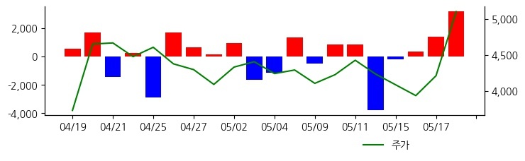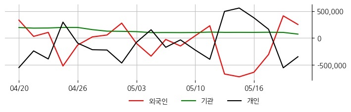 외국인이 지속적으로 순매수 한 종목입니다. 주가의 위치나 산업의 변화를 확인하면서 대응할 필요가 있습니다. 05/18 16:45 기준