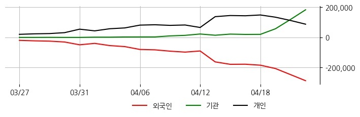 21일 순매매 동향 : 외국인 40,491주 순매도 기관 64,071주 순매수 개인 24,560주 순매도
