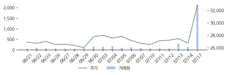 20일 평균 거래량 대비 거래량이 급증한 종목입니다. 최근 주가의 움직임과 주요 매매주체의 변동을 함께 확인해야 합니다. 07/17 15:36 기준