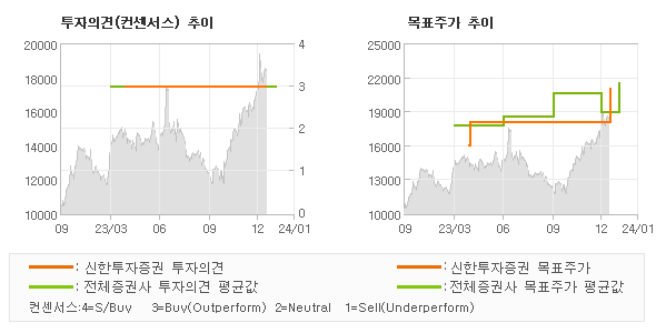 오늘 신한투자증권에서 발표된 'BUY'의견 및 목표주가 21,000원은 전체의견에 수렴하면서 시장의 평균적인 기대감이 비교적 객관적으로 표현된 것으로 풀이되며 목표가평균 대비 5% 초과하고 있는 것으로 집계되었다.