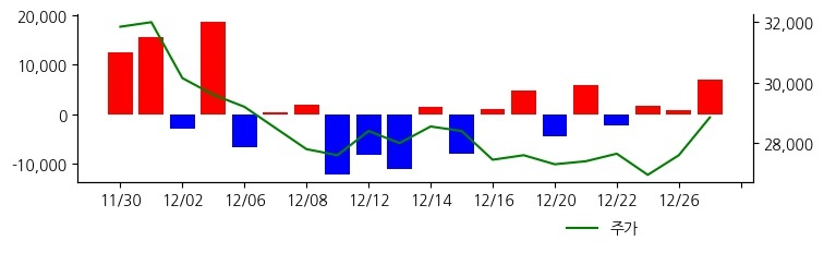 27일 순매매 동향 : 외국인 246,337주 순매수 기관 722,699주 순매수 개인 983,329주 순매도