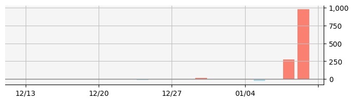 최근 연속적으로 상승 흐름을 보인 종목입니다. 상승강도에 따라서 조정을 보일 수도 있으니 주의를 기울일 타이밍입니다. 01/10 09:00 기준