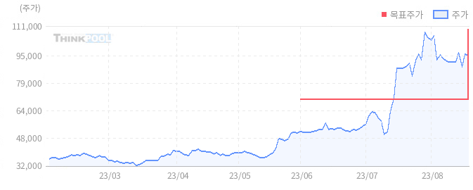참고로 최근에 목표주가를 가장 공격적으로 제시한 신한투자증권은 투자의견 '매수(신규)'에 목표주가 130,000원을 제일 보수적인 의견을 제시한 한국투자증권은 투자의견 'BUY'에 목표주가 64,000원을 제시한 바 있다.
