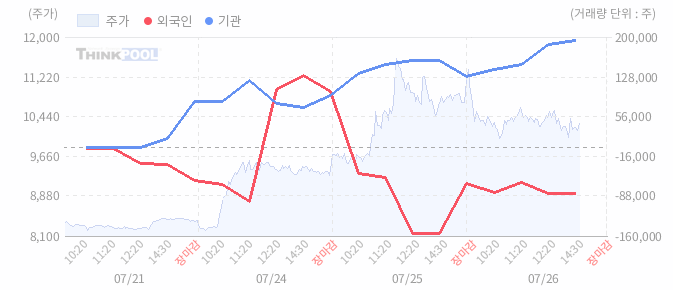 26일 순매매 동향 : 기관 1,009백만원 순매수, 외국인 610백만원 순매수, 개인 1,144백만원 순매도