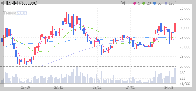 - [장중수급포착] 피에스케이홀딩스, 외국인/기관 동시 순매수… 주가 +5.74%02/02