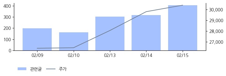 최근 5일 평균 대비 커뮤니티 및 SNS에 관련글이 급증한 종목입니다. 02/16 08:03 기준