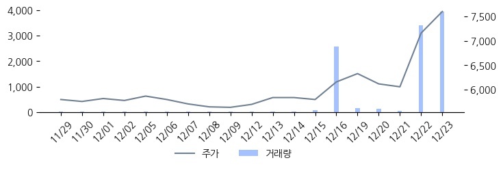 20일 평균 거래량 대비 거래량이 급증한 종목입니다. 최근 주가의 움직임과 주요 매매주체의 변동을 함께 확인해야 합니다. 12/23 15:38 기준
