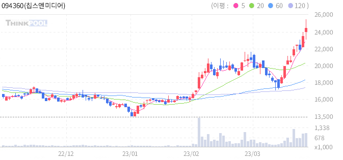 칩스앤미디어, AI 영상 분석 시대 최대 수혜주;2023/03/27유진투자증권은 27일 칩스앤미디어(094360)에 대해 인공지능(AI) 분석 대상이 문자 중심에서 영상으로 확대... 박 연구원은 미국과 중국의 반도체 관련 분쟁 지속으로 동사는 양국을 대상으로 한 라이선스 매출이...