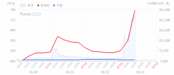 13일 11:30 매매 동향 : 외국인 318,367주 순매수, 기관 0주 순매수