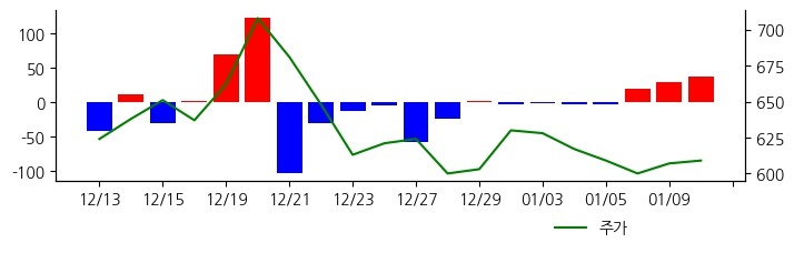 외국인이 지속적으로 순매수 한 종목입니다. 주가의 위치나 산업의 변화를 확인하면서 대응할 필요가 있습니다. 01/10 16:43 기준