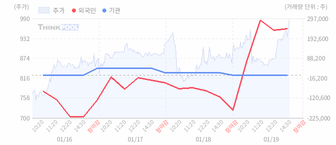 19일 14:40 매매 동향 : 외국인 430,542주 순매수, 기관 0주 순매수